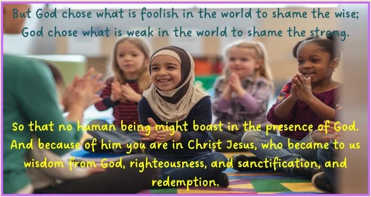 Consider your calling, brothers and sisters: not many of you were wise according to worldly standards, not many were powerful, not many were of noble birth. But God chose what is foolish in the world to shame the wise; God chose what is weak in the world to shame the strong; God chose what is low and despised in the world, even things that are not, to bring to nothing things that are, so that no human being might boast in the presence of God. And because of him you are in Christ Jesus, who became to us wisdom from God, righteousness, and sanctification, and redemption; so that, as it is written, ‘Let the one who boasts, boast in the Lord.’