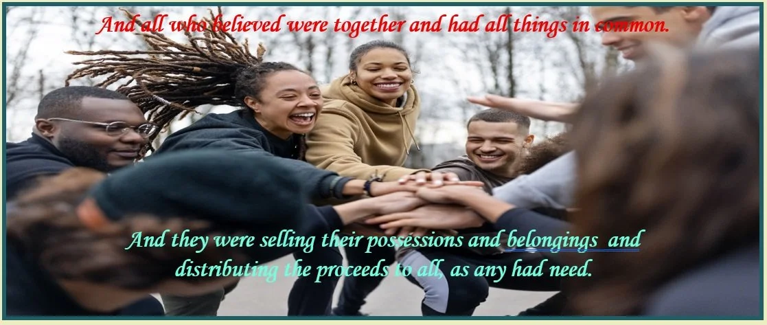 The believers devoted themselves to the Apostles’ teaching and the fellowship, to the breaking of the bread and the prayers. And awe came upon every soul, and many wonders and signs were being done through the Apostles. And all who believed were together and had all things in common. And they were selling their possessions and belongings and distributing the proceeds to all, as any had need. And day by day, attending the Temple together and breaking bread in their homes, they shared their food with glad and generous hearts, praising God and having favour with all the people. And the Lord added to their number day by day those who were being saved.